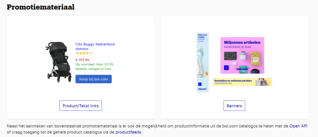 - Daarnaast krijg je ook toegang tot banners en tekst-links die je kan gebruiken om producten te promoten.